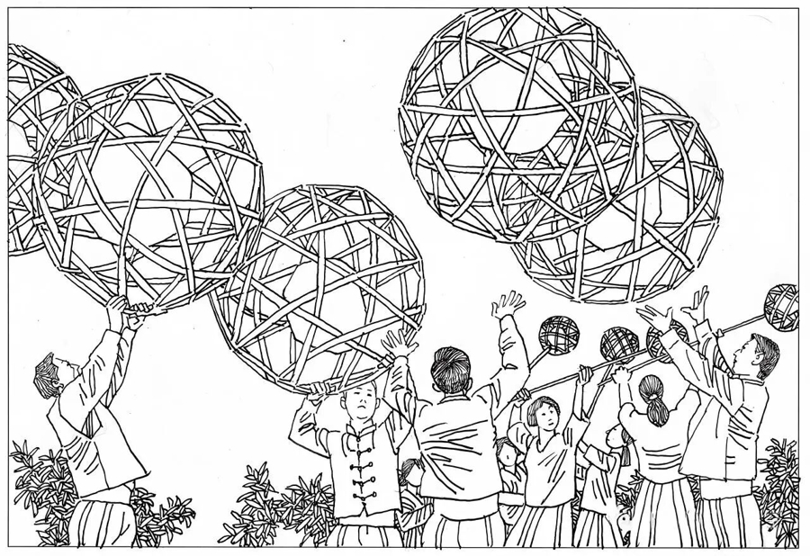 外形由十二根毛竹片条巧妙扎制