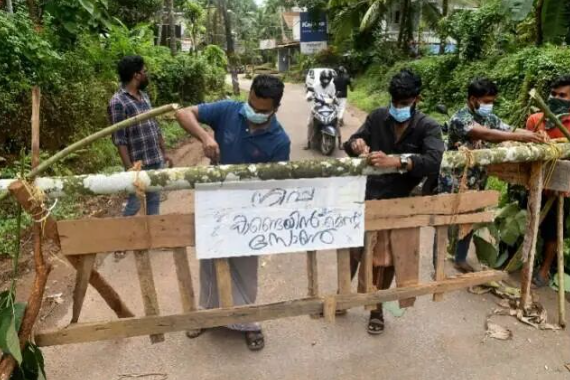 2023年9月13日,在印度南部喀拉拉邦科泽科德地区,人们设置路障以遏制尼帕病毒传播。孟加拉国、印度、马来西亚等几个国家几乎每年都会发现少量病例。新华社/路透