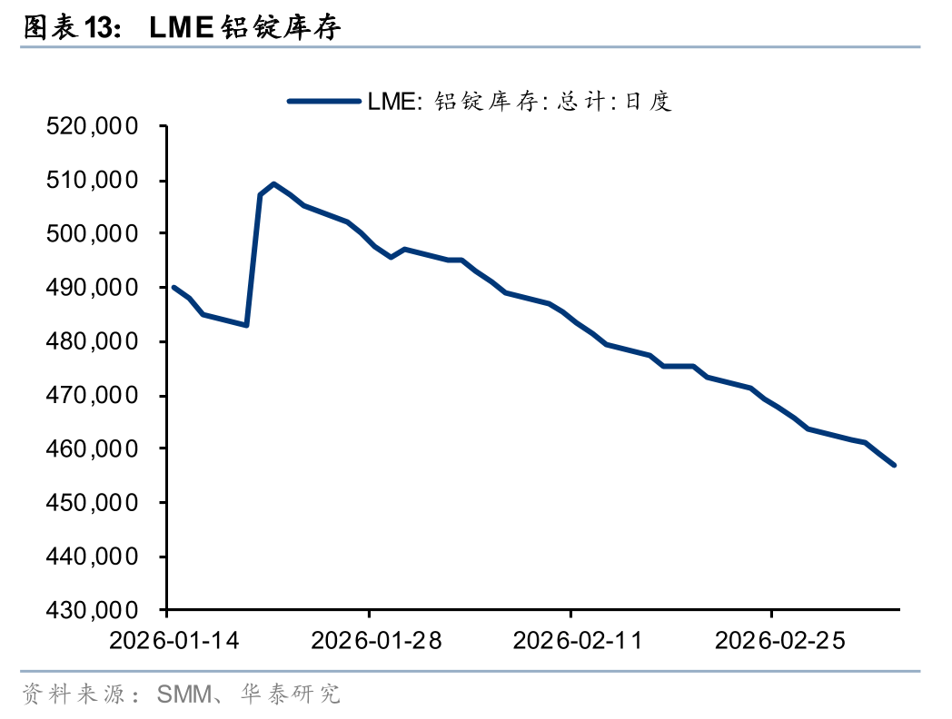 据咱们测算,中东地区电解铝产能占天下约9%,该地区地缘扰动对举座铝供给影响较大。跟着近期中东阵势合手续升级,卡塔尔铝业、巴林铝业等产能已受到本质性影响,咱们测算2026年天下电解铝供给增速或降至约1.0%,供需缺口有望进一步扩大至130万吨以上。在本次地缘冲突合手续2个月以上的情景假定下,天下现货供应弥留程度或彰着加重,LME铝市集存在较大逼仓风险,短期咱们觉得铝价有望上探4000好意思元/吨。若扰动合手续时候达到6个月以上,能源核心价钱抬升将导致电解铝潜在减产风险从中东扩散至欧洲等地,铝价上行天花板或进一步翻开。