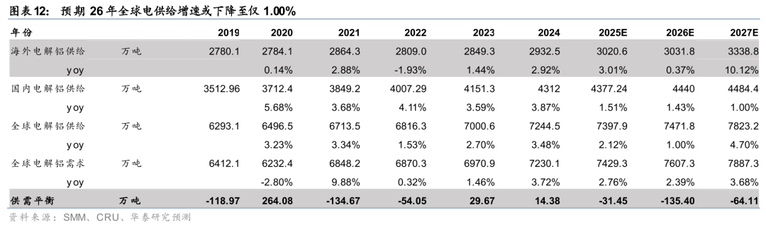 凭据现存已受影响产能公告,咱们预期26年天下电解铝供给增速或下降至仅1.00%,供需缺口或扩大至130万吨以上。凭据公司公告,一家天下股票配资由于卡塔尔能源公司住手供应LNG,卡塔尔铝业在3月3日运行迟缓减产,瞻望将于3月底完成停产责任,全面重启将需要6-12个月。该产能25年履行产量约68万吨,中性预期若该产能在6个月之后再行起槽,咱们预期仍将影响26年天下履行产量30万吨。此外面前巴林铝业照旧公布了因弗成抗力无法交货,该形式年产能在160万吨以上。笼统咱们凭据现存公司已公告的影响产能策动,26年天下电解铝供给增速或下降至仅1.00%,天下供需缺口或超130.0万吨,尤其国际电解铝将靠近“合手续偏紧,库存合手续去化”的情形。
