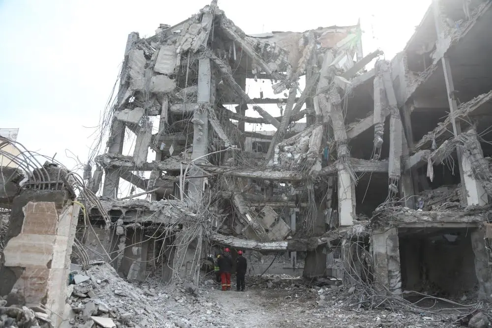 转圜东谈主员在受损建造前责任 新华社图