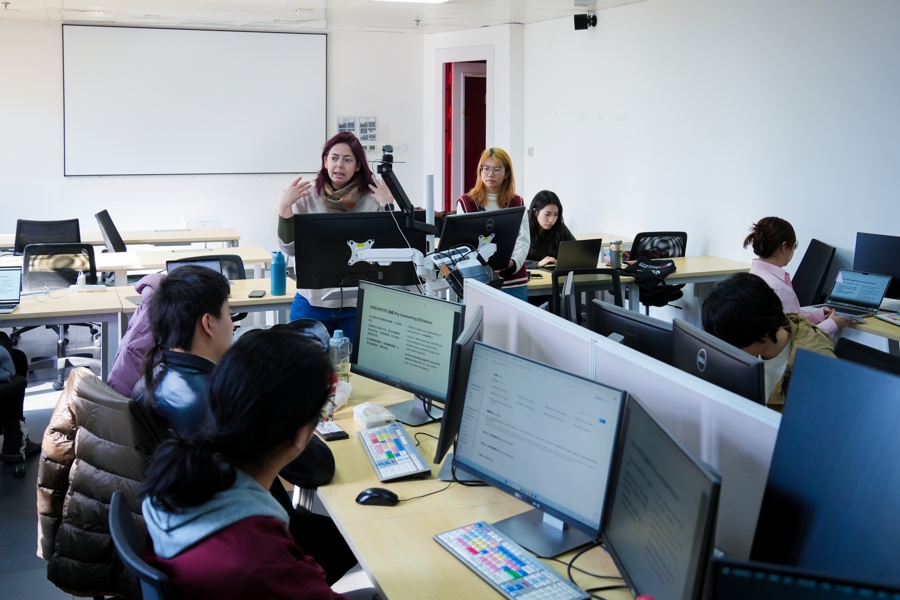 “开学第一课”现场,学院AI电影制作专科首届重生都聚职责室,在Odet Abadia真诚涵养下伸开高强度的智能创作初体验