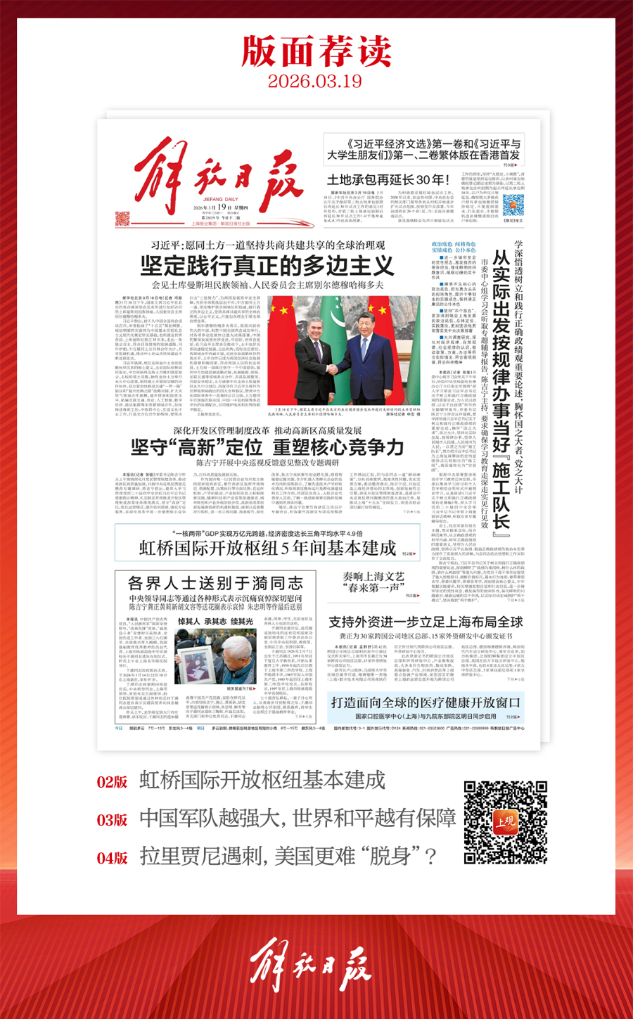 早上好!上不雅新闻『早读』来啦!今天是2026年3月19日星期四,农历二月月吉。