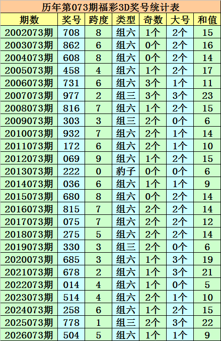 开奖归来:福彩3D第2026073期奖号:504。