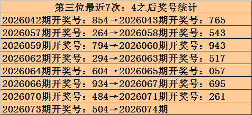 开奖归来:第2026073期福彩3D奖号为504,和值9,跨度5,格局:奇偶偶、大小小。