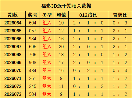 开奖回来:福彩3D上期奖号为504,和值为9,其中奖号012路比为1:1:1,奇偶比为1:2。