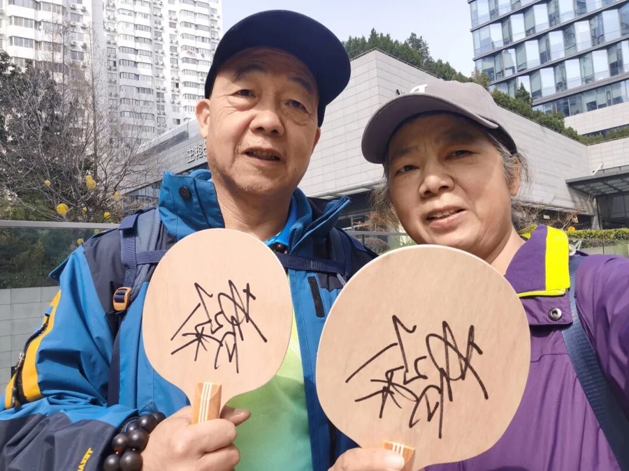退休后,贾毅萍与老伴到上海与犬子一谈生计,往常良伴俩可爱打乒乓球。贾毅萍说:“田林社区市民健身中心有免费时段,咱们也会到徐家汇社区活动中心和徐家汇体育公园打球。上海城市有温度,上海东谈主十分好,对咱们外地东谈主很存眷很友好。”她十分拿出我方跟老伴的像片,两东谈主拿着签名球拍,“球拍上的签名是寰宇冠军曹臻,赶巧3月底上海有个活动现场,咱们拿到了签名球拍。”