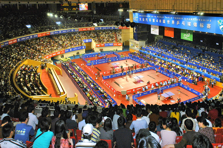 位于徐家汇体育公园的上海体育馆,与乒乓球开通的渊源已晋升半个世纪,是申城当之无愧的乒乓圣地。1976年,这里举办建成后首场赛事 —— 上海海外乒乓球友好邀请赛,张充仁先生创作的 “友谊第一” 雕镂于今站立,见证着国球与城市的初心纠合。