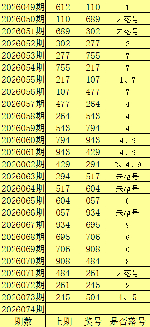 一、上期回来:福彩3D第2026073期开出奖号504。